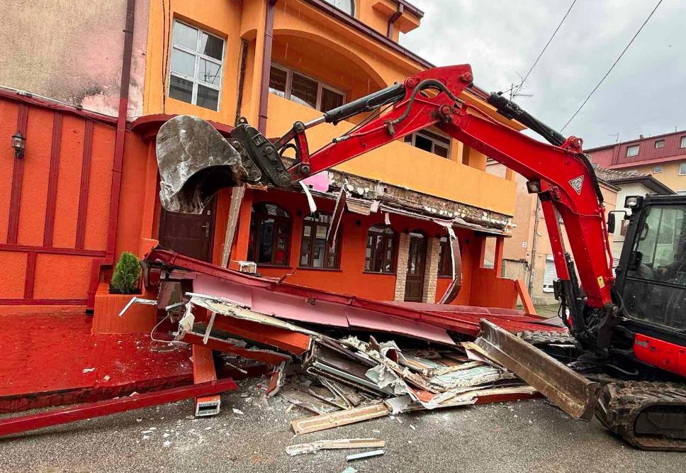 Општина Центар денеска изврши уривање на нелегална доградба која беше дел од ресторанот „Мечка“ во Дебар Маало.
